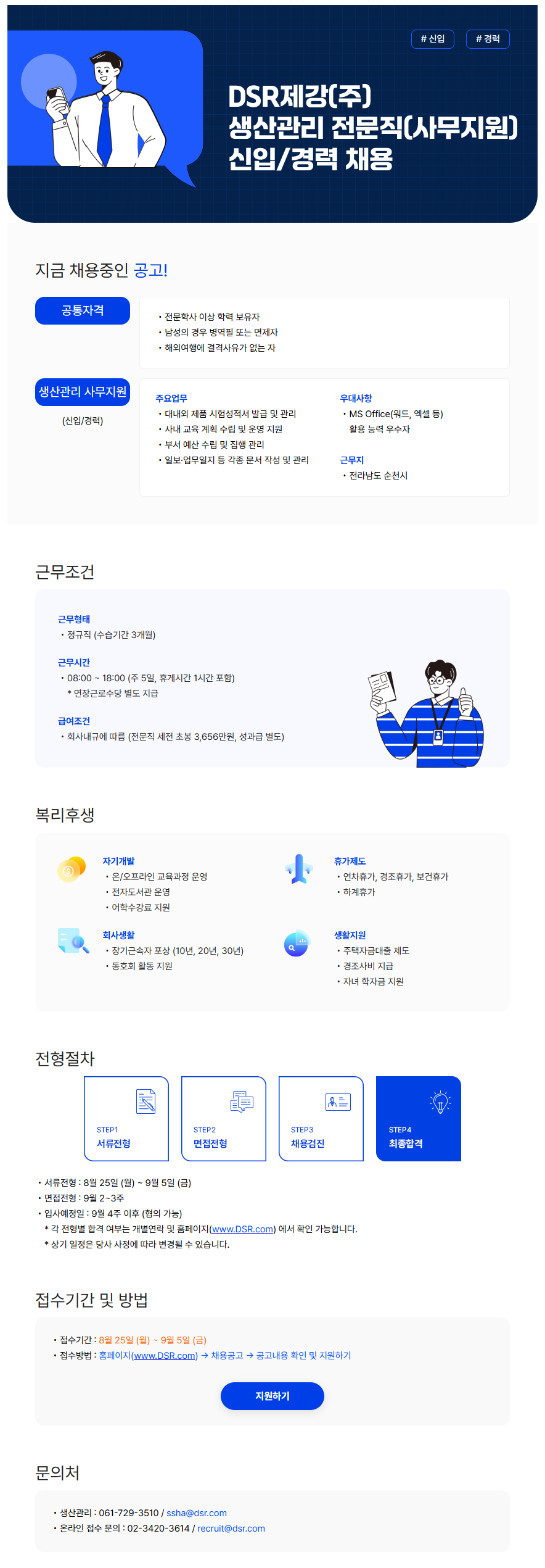 DSR이 미래를 함께 열어갈 인재를 모집합니다.